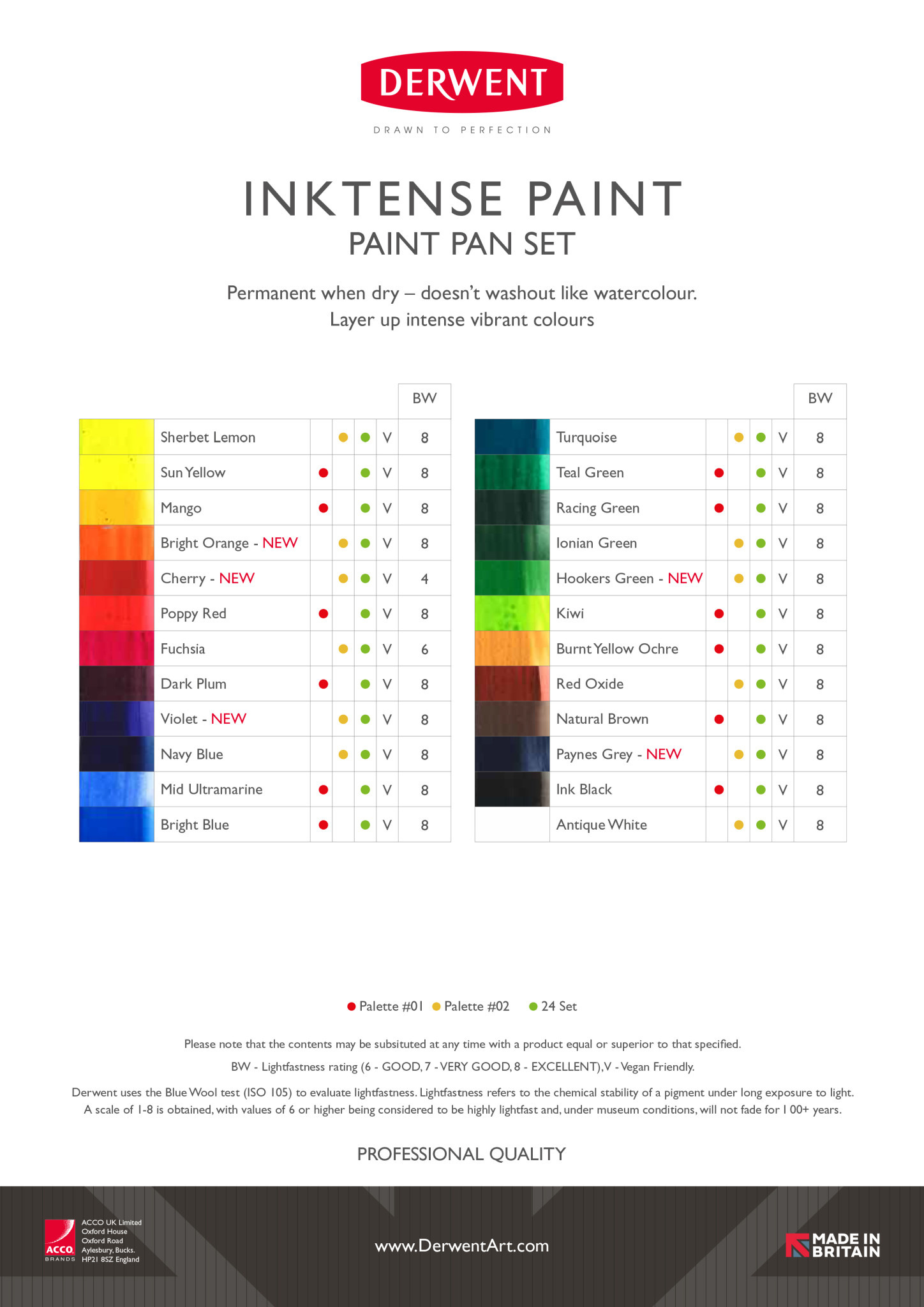 Derwent Inktense aquarelverf pannen bevatten de unieke Inktense-formulering die te vinden is