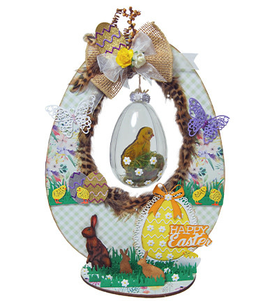 Houten ei 27.5 cm. + plastic ei 11 cm.