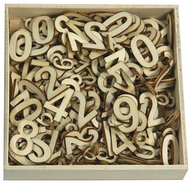 Houten ornamenten Cijfers Basic Groot/Klein doosje 10,5 x 10,5 cm. 256 pcs.