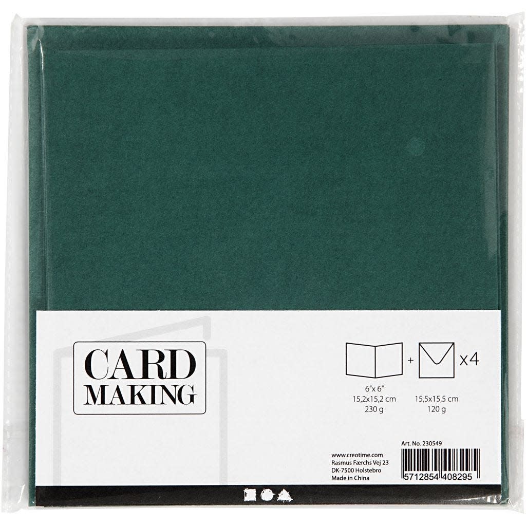 Kaarten & Enveloppen Kaart 15,2x15,2cm. Enveloppe 16x16cm. 4st. Donker groen