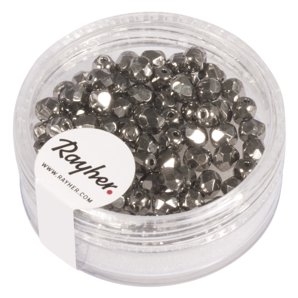 Rayher Glas Facetkraal 4mm Antraciet Opaque 100st