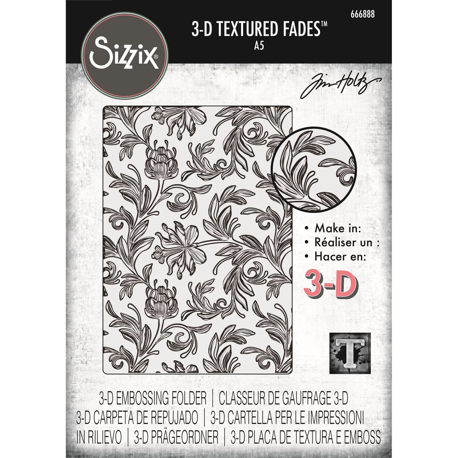 Sizzix Tim Holtz 3-D Texture Fades Embossing Folder Botanical Large A5
