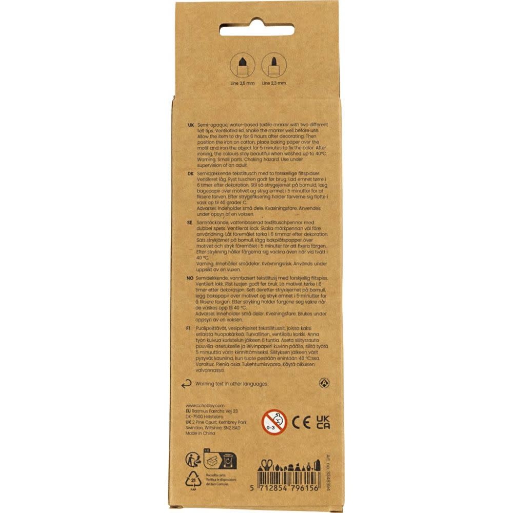 Creativ Company Textielstiften, lijndikte 2,3+3,6 mm, 6st, diverse kleuren