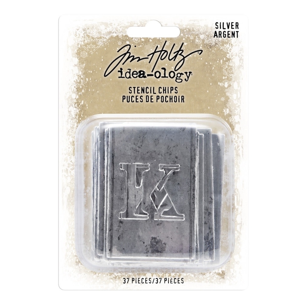 Tim Holtz Idea-Ology Stencil Chips letters 37 pcs Silver