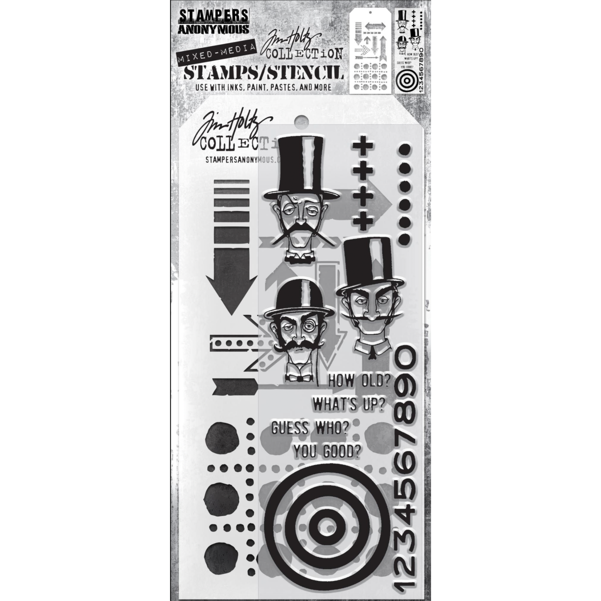 Tim Holtz Mixed Media Stamps & Stencil Set 39 Arrows and Dotted Line