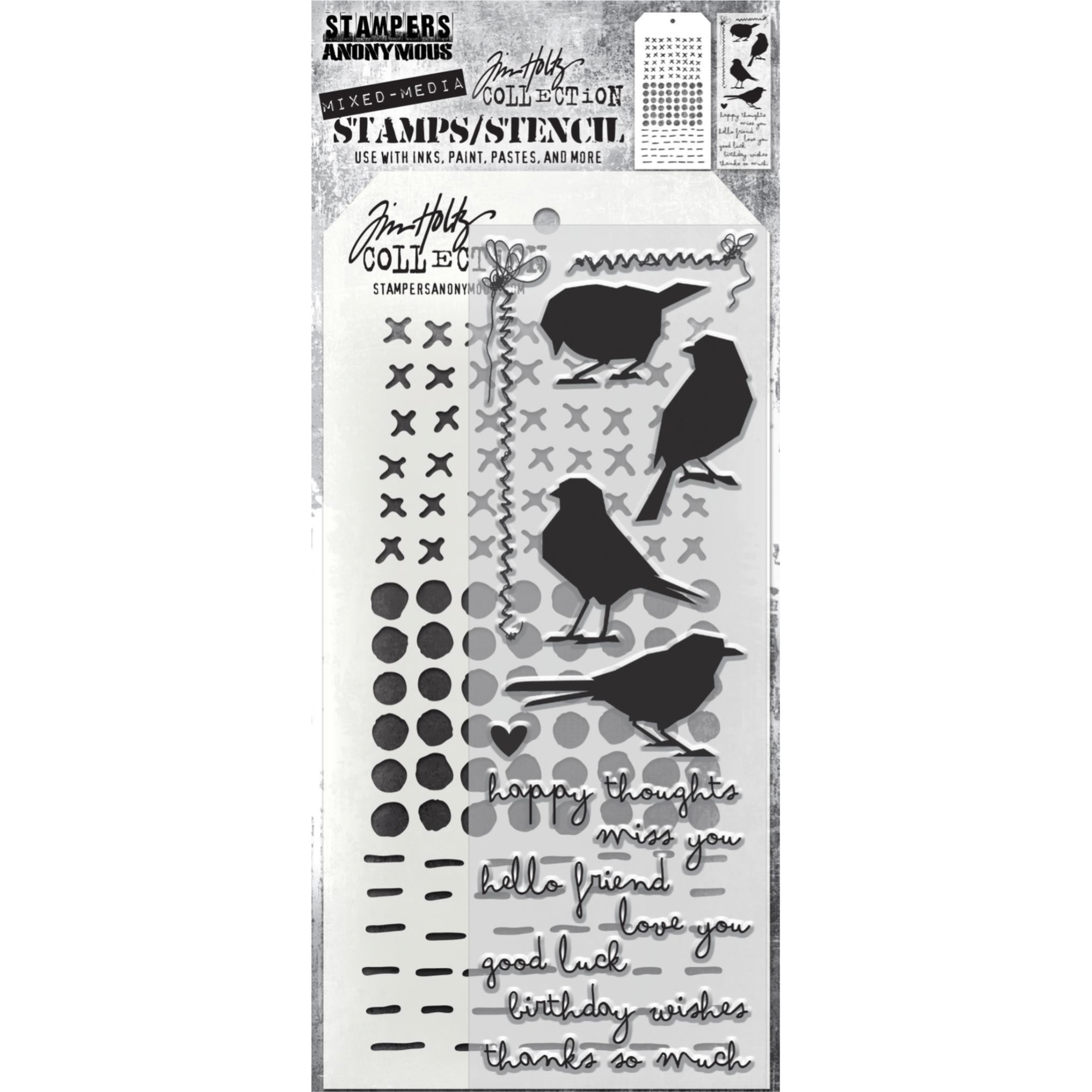 Tim Holtz Mixed Media Stamps & Stencil Set 82 Silhouette Bird