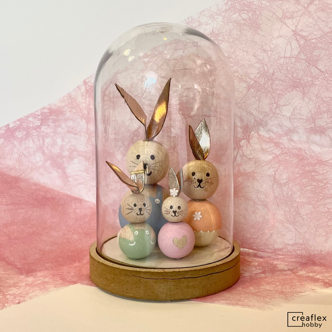 Daarna plaatsen we ze in een prachtige stolp, zodat je een uniek en stijlvol paasstuk creëert.